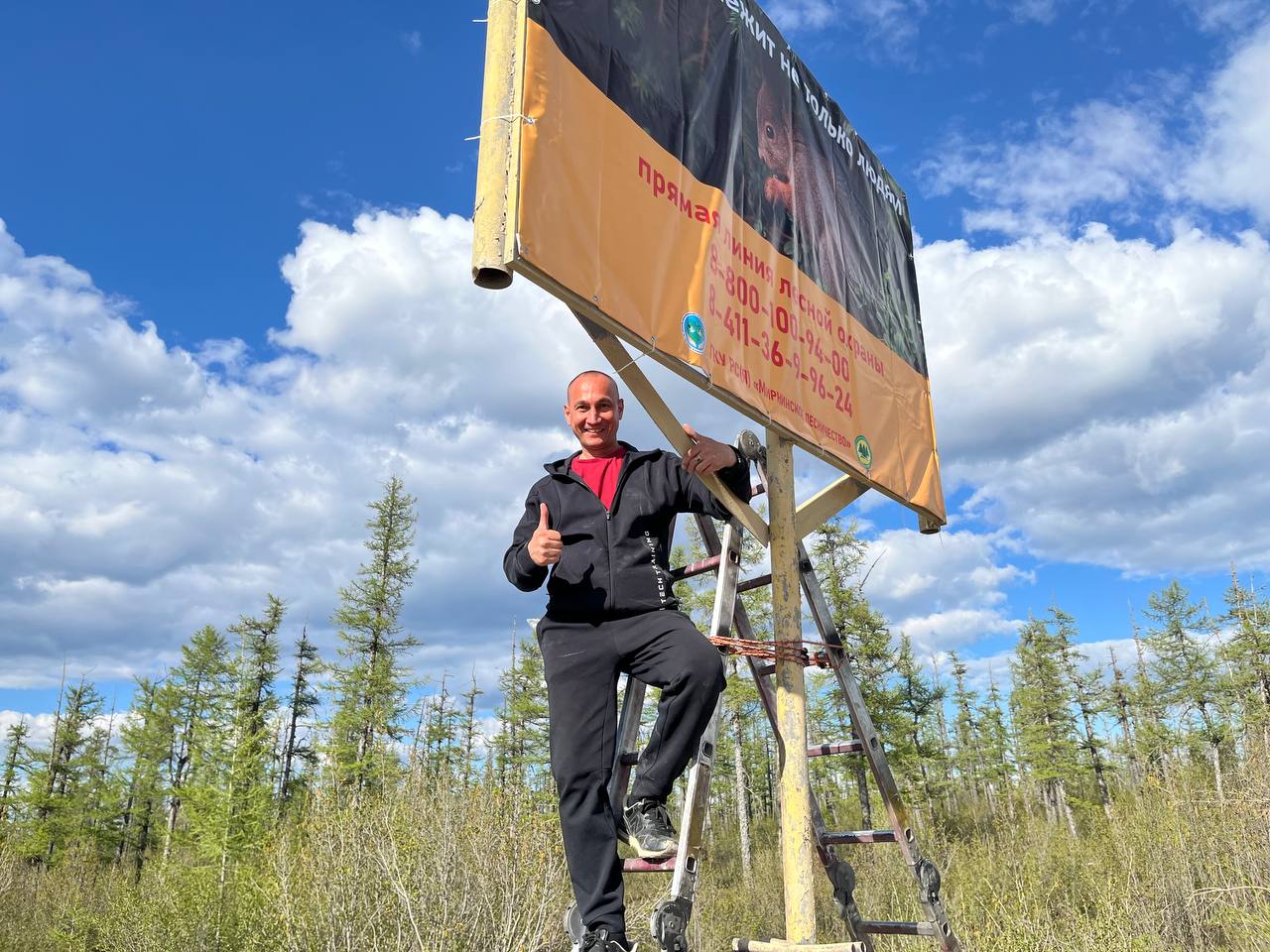 Ежегодно, 5 июня, отмечается Всемирный день охраны окружающей среды. Для профилактики пожаров в Мирнинском районе депутат Айхальского поселкового совета от ЛДПР Андрей Руськин и партиец Антон Карамышев установили баннеры у трассы п. Айхал - Мирный "Берегите лес от пожара"