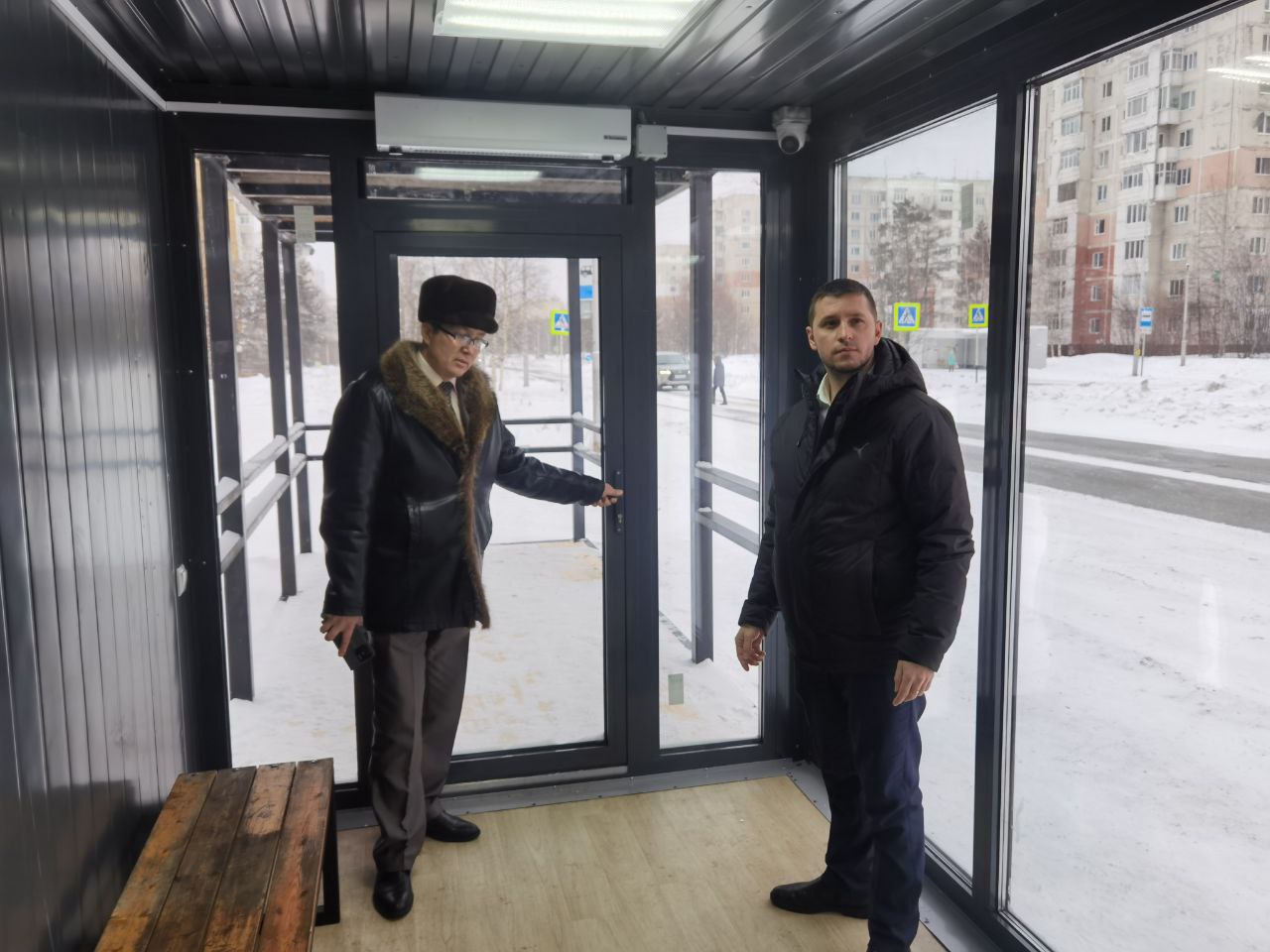 Рядом с домом №9 на проспекте Дружбы Народов глава города Нерюнгри, член ЛДПР Илья Гудошник принял участие в презентации теплой автобусной остановки. Ее передала компания «Колмар» городу Нерюнгри