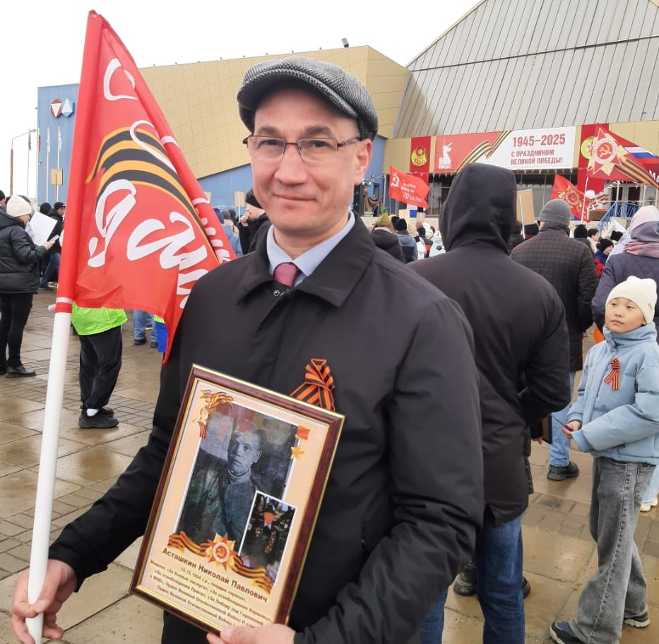 "На снимке мой дедушка. Он был гвардейцем, сержантом. Войну завершил в Берлине. Ушел на фронт в 17 лет и прослужил все пять лет. Вернулся живым и прожил долгую жизнь после войны. На мероприятие пришло огромное количество людей. В шествии "Бессмертного полка" участвовало очень много людей. Кроме того, в Айхале состоялся автопробег, участники которого украсили свои машины и проехали с флагами, подавая сигналы. Все было организовано на высшем уровне. Праздник прошел великолепно, оставив у всех положительные эмоции и впечатления. Память о героях Великой Отечественной войны священна для каждого жителя Айхала. Такие мероприятия, как День Победы, имеют огромное значение для воспитания молодого поколения. Видя пример своих дедов и прадедов, молодые люди осознают ценность мира и свободы, учатся любить свою страну и быть готовыми к ее защите", - поделился Андрей Руськин.