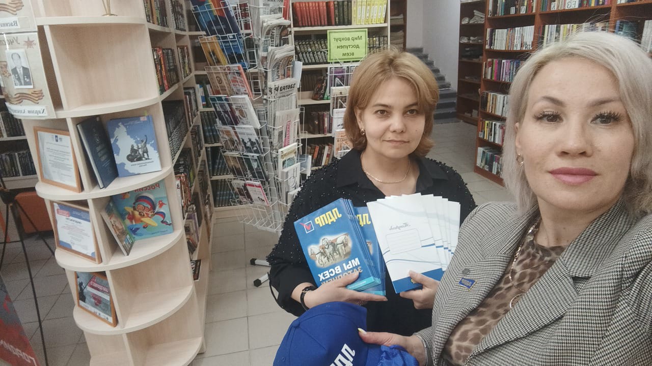 Дмитрий Жердев и Нина Щеголева вручили сотрудникам библиотек подарки с символикой партии.