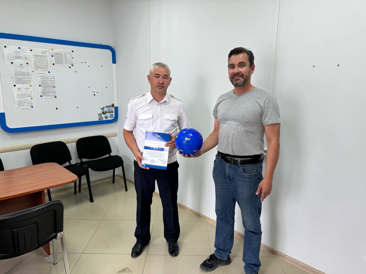 От имени регионального отделения, всему подразделению, возглавляемому Александром Петровичем, был вручен брендированный мяч с символикой ЛДПР, а также памятные партийные футболки и сумка. Кроме того, было передано благодарственное письмо от имени координатора регионального отделения, народного депутата республики Саха (Якутия) Гаврила Парахина.