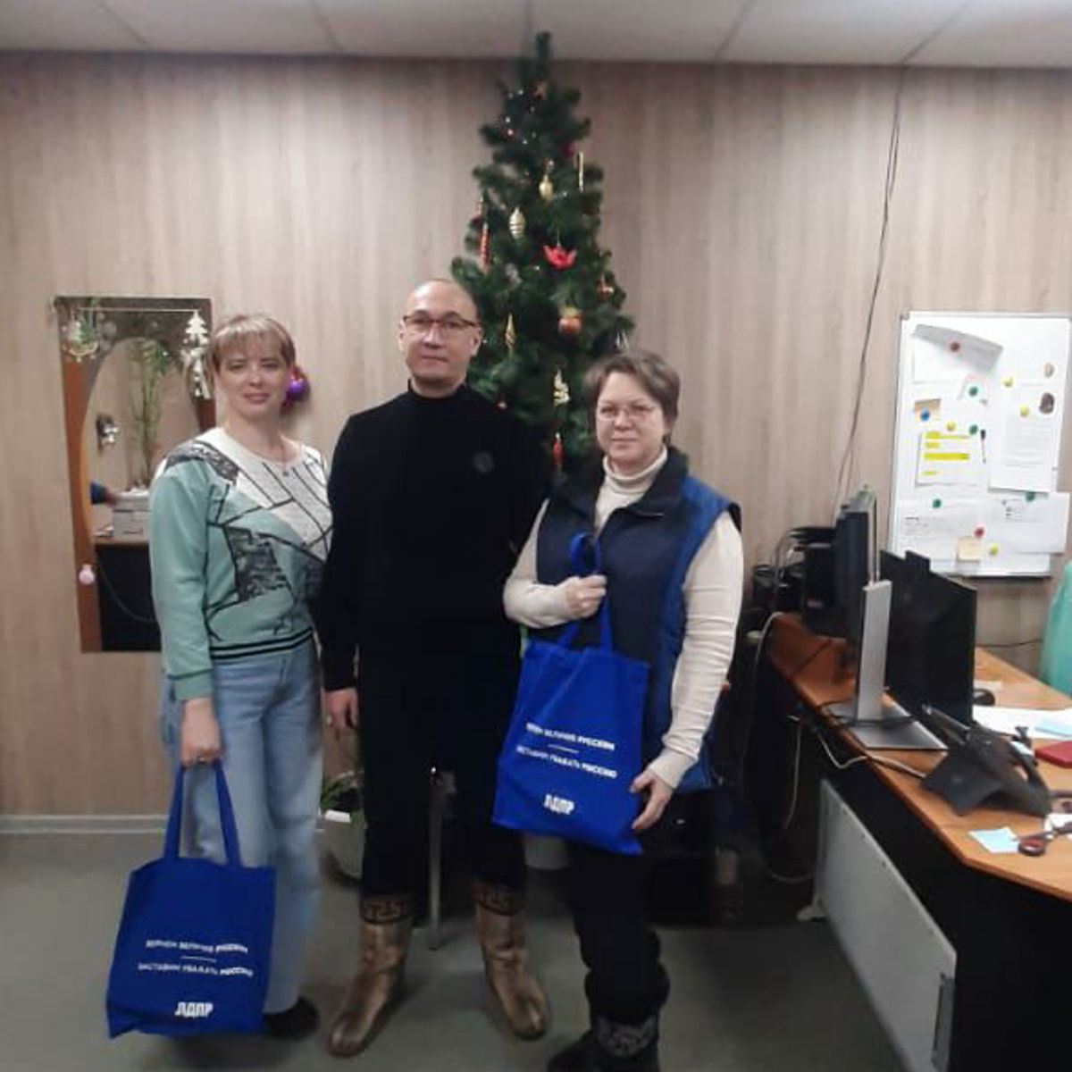 В поселке Айхал депутат Совета от ЛДПР Андрей Руськин поздравил с наступающим Новым годом сотрудников ООО"АЛРОСА-Спецбурение" с наступающим Новым годом, вручил им подарки и сказал добрые пожелания