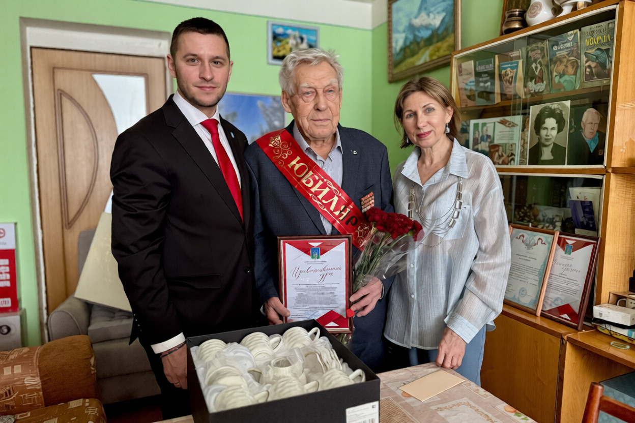 Глава города, член ЛДПР Илья Гудошник вместе с участниками хора ветеранов «Сердолик» и вокальной группы «Костер на снегу» приехали лично поздравить со знаменательным, поистине историческим юбилеем – 100-летием со дня рождения – участника Великой Отечественной войны Валерия Михайловича Спиридонова.