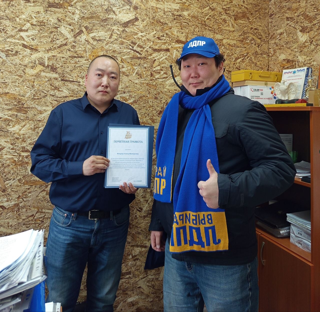 В День специалиста юридической службы Вооруженных Сил Российской Федерации представители Якутского РО ЛДПР поздравили руководителя юридической службы Военного комиссариата Республики Саха (Якутия)