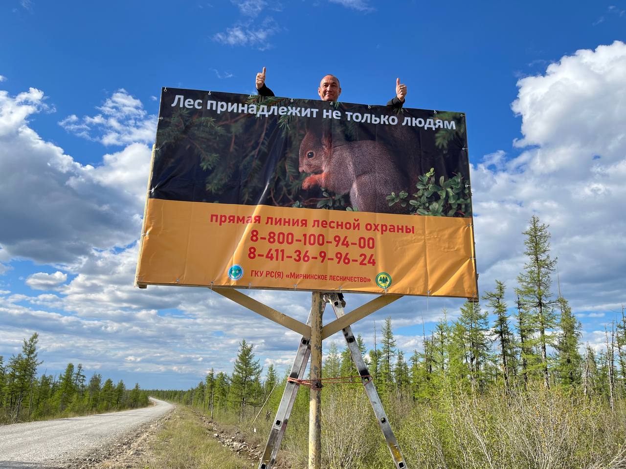 Ежегодно, 5 июня, отмечается Всемирный день охраны окружающей среды. Для профилактики пожаров в Мирнинском районе депутат Айхальского поселкового совета от ЛДПР Андрей Руськин и партиец Антон Карамышев установили баннеры у трассы п. Айхал - Мирный "Берегите лес от пожара"
