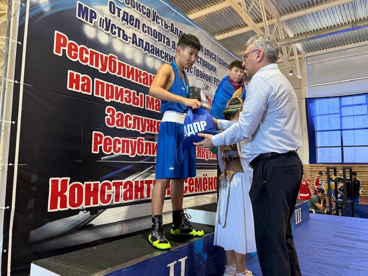 Депутат Государственного Собрания Якутии, являющийся координатором регионального отделения ЛДПР Гаврил Парахин присутствовал на церемонии награждения победителей Республиканского боксерского турнира, посвященного памяти мастера спорта Константина Бурцева. Организаторами соревнований выступили Федерация бокса Усть-Алданского района и отдел спорта местной администрации