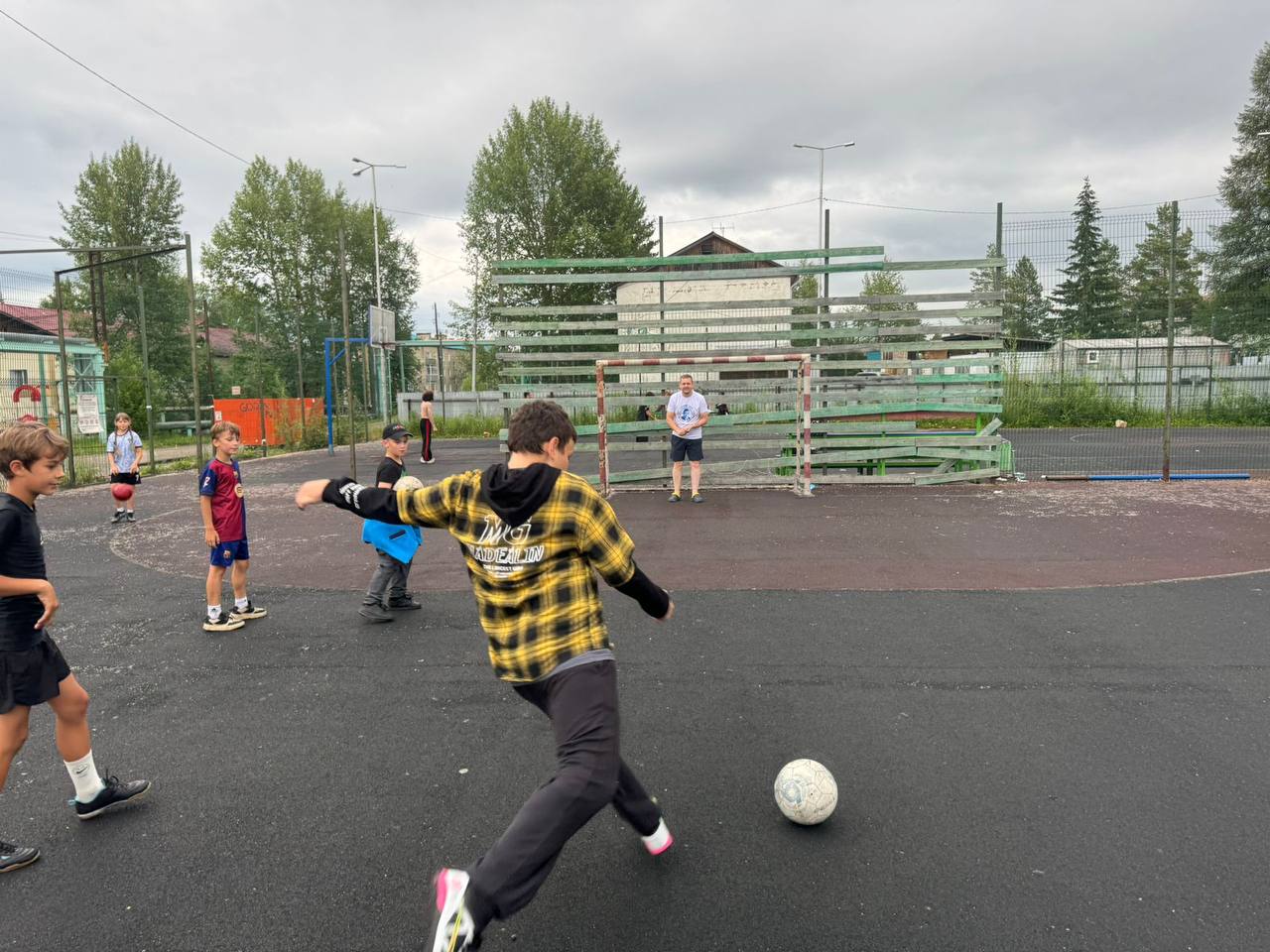 В городе Алдан часто можно встретить ребят, которые увлеченно играют в футбол прямо во дворах. Так, проезжая по одной из центральных улиц, кандидат в депутаты ЛДПР Сергей Баров вместе с руководителем молодежной организации Натальей Абдуллаевой заметили команду ребят, гоняющих мяч